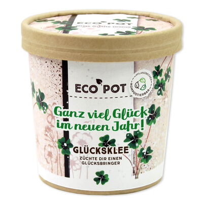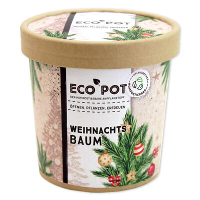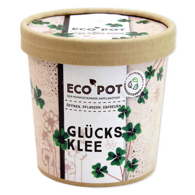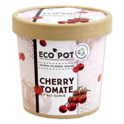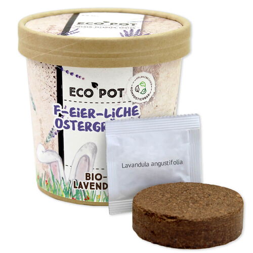 ecopot enthält einen kompostierbaren Anzuchtbecher, eine Kokosfasertablette und eine kleine Pflanzensamentüte.