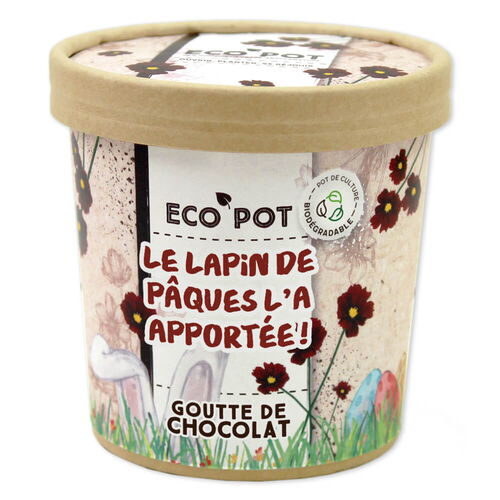 • Au bout de 12 à 18 jours environ les gouttes de chocolat commencent à pousser. Continuer à arroser l'ecopot modérément.