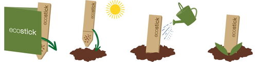 The plant stick can simply be planted in a conventional, small flower pot with some potting soil or it can be planted in a flower bed, in the garden, in a raised bed, etc. - depending on the type of plant and the current season. With the plant container, nothing stands in the way of a blossoming imagination! Of course, sufficient sunlight and moderate watering are important for germination.