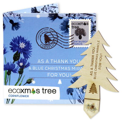 The foldable postcard is a small gift, a souvenir or a thank you in between, but can also be used flexibly as a mailing booster or gift for employees/colleagues. The wooden plant stick is engraved using a laser process, the plant seeds are then attached to it with natural glue and the finished wooden stick is glued into the card. Each step is carefully made by hand. The plant sticks are available from us in three special shapes: ecobee (bee shape), ecoheart (heart shape) and ecoxmas tree (Christmas tree shape). Of course, the instructions are always the same: carefully remove them from the booklet, plant them and take care of them regularly.