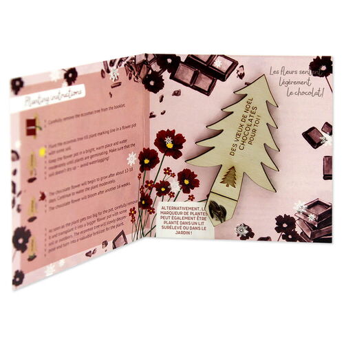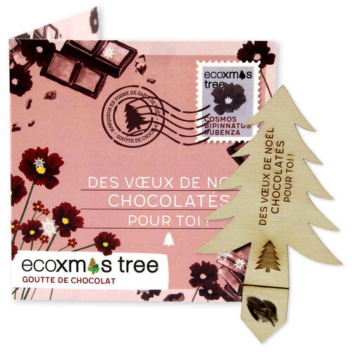 L'ecoxmas contient un marqueur de plantes en forme de sapin de Noël, de la colle écologique et des semences de plantes.