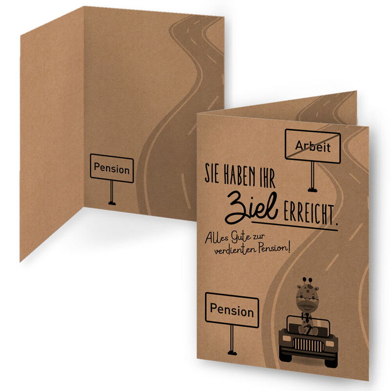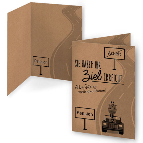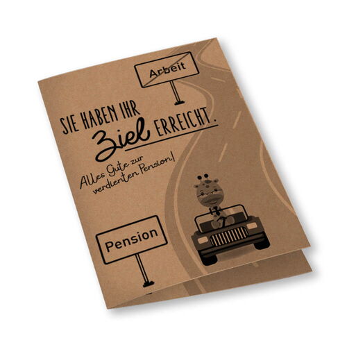 Sie haben Ihr Ziel erreicht: Pension. Nach der langen und wilden (Karriere-)Fahrt ist nun das Ziel erreicht. Alles Gute zur verdienten Pension! Auf der Innenseite ist genügend Platz für persönliche Glückwünsche.