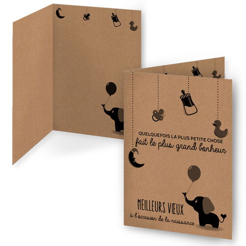 Quelquefois la plus petite chose fait le plus grand bonheur! Avec la carte de vœux les tous jeunes parents reçoivent des vœux sincères lors de la naissance. Sur la face intérieure il y a suffisamment de place pour tes vœux personnels de bonheur. Nous recommandons sur ce point des cadeaux naturels personnalisables pour la naissance.