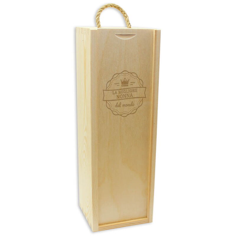 La nonna migliore del mondo! Che sia per il suo compleanno, per il prossimo pranzo a cui ti inviterà o come semplice pensiero, non cedere al solito mazzo di fiori. Stupiscila con qualcosa di unico e speciale, proprio come lei. La confezione regalo personalizzata per il tuo vino preferito o qualsiasi altro tipo di bevanda (verifica la misura della bottiglia in anticipo!). Attenzione: la box è vuota!