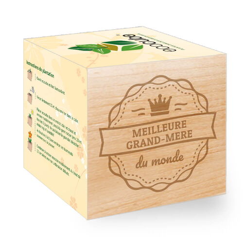 Grand-mère est la meilleure! N'offre pas de bouquet de fleurs traditionnel à ta grand-mère à son anniversaire ou en cadeau lors de la prochaine visite! Surprend-la avec un ecocube. Non seulement le cube tape à l'œil, mais il procurera beaucoup de plaisir pendant la culture et nomme ta grand-mère officiellement la meilleure du monde!