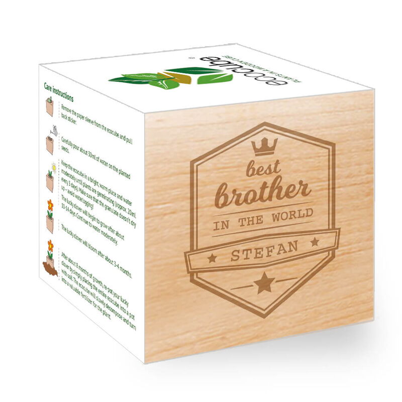 For the best brother in the world! With this original gift, you can give your brother an award for always being the best brother in the world! This personalized ecocube will always remind him of your many adventures and moments of happiness together.