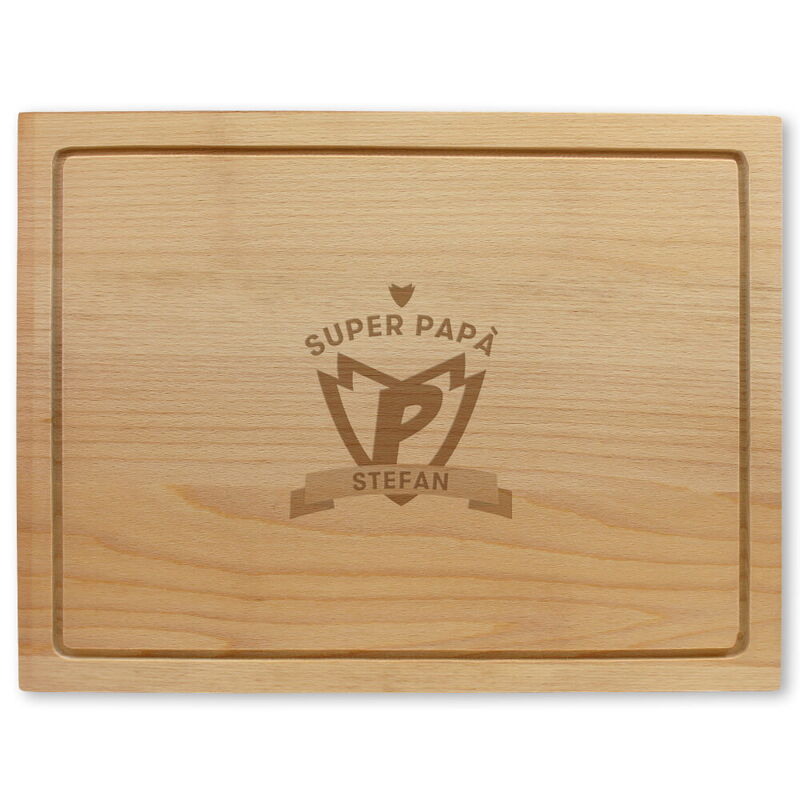 Papà, un eroe senza mantello. Nessun supereroe può competere con la forza e l'amore di un papà. Personalizza l'incisione laser con il nome del tuo papà. Mentre sarà intento a cucinare manicaretti deliziosi, il tuo papà non potrà fare a meno di ricordare di essere il tuo supereroe!