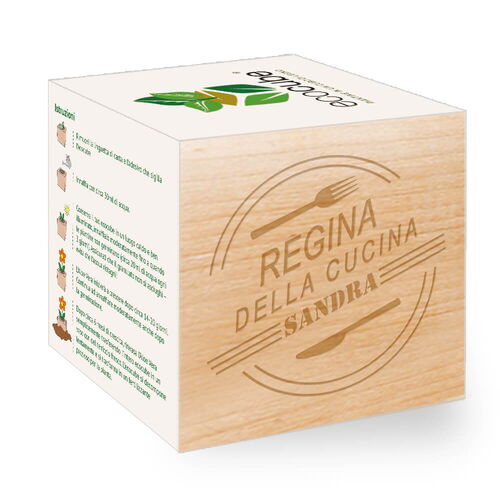 Nella mia cucina, commando io! Nomina una cuoca d'eccellenza a capo chef durante la tua prossima cena. Questo ecocube si trasforma in un oggetto decorativo personalizzato, perfetto in ogni cucina. Ricorda a tutti chi è la regina della cucina. La piantina da coltivare che ti ricorda in ogni momento quanto questa persona sia speciale per te!