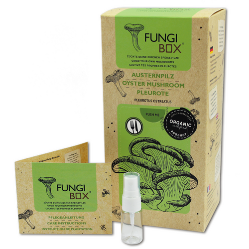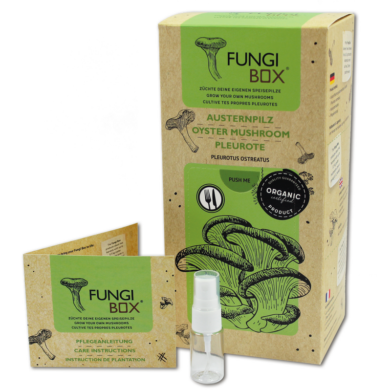 We receive the fungal granulate used in the Fungi Box from a German certified organic mushroom grower. The Fungi Box produces about 2 harvests with up to 0.5 kg oyster mushrooms.