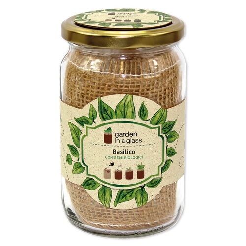 garden in a glass contiene compresse in fibra di cocco, sacchetto di juta, sacchetto di semi.