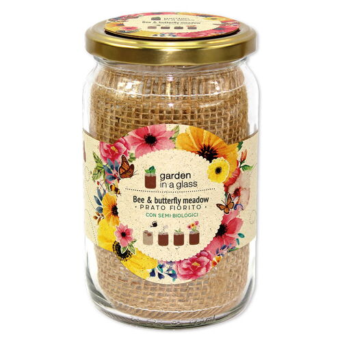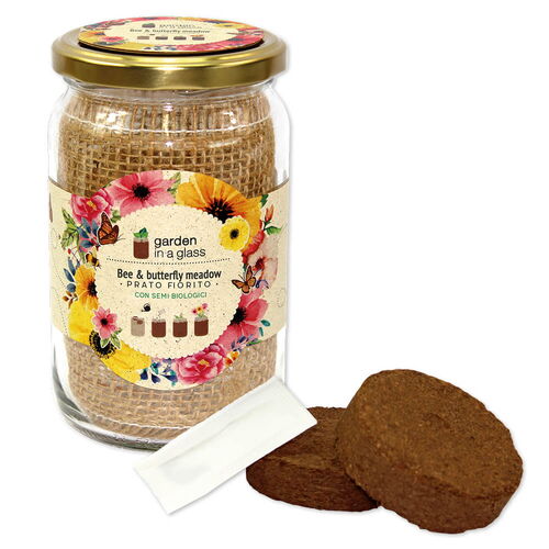 garden in a glass contiene compresse in fibra di cocco, sacchetto di juta, sacchetto di semi.