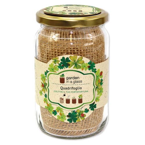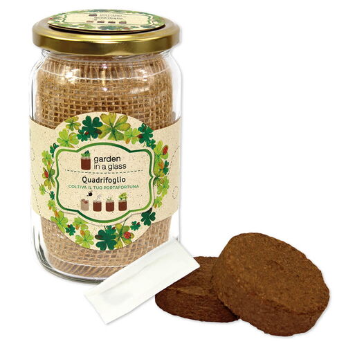garden in a glass contiene compresse in fibra di cocco, sacchetto di juta, sacchetto di bulbi.