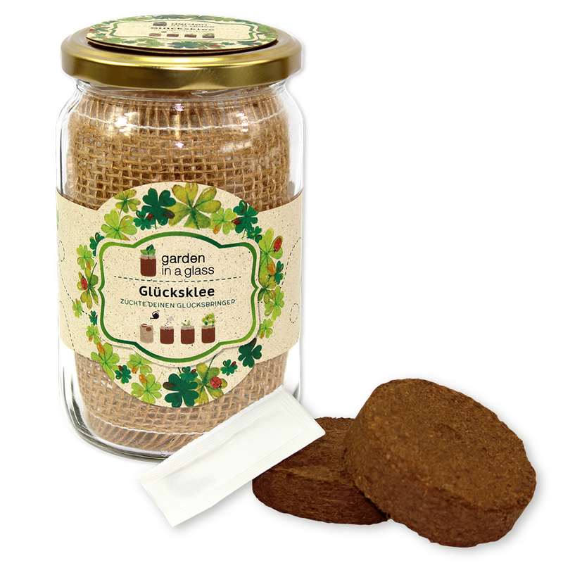 • Nach ca. 10-14 Tagen beginnt der Glücksklee zu wachsen. garden in a glass weiterhin nur mäßig gießen.