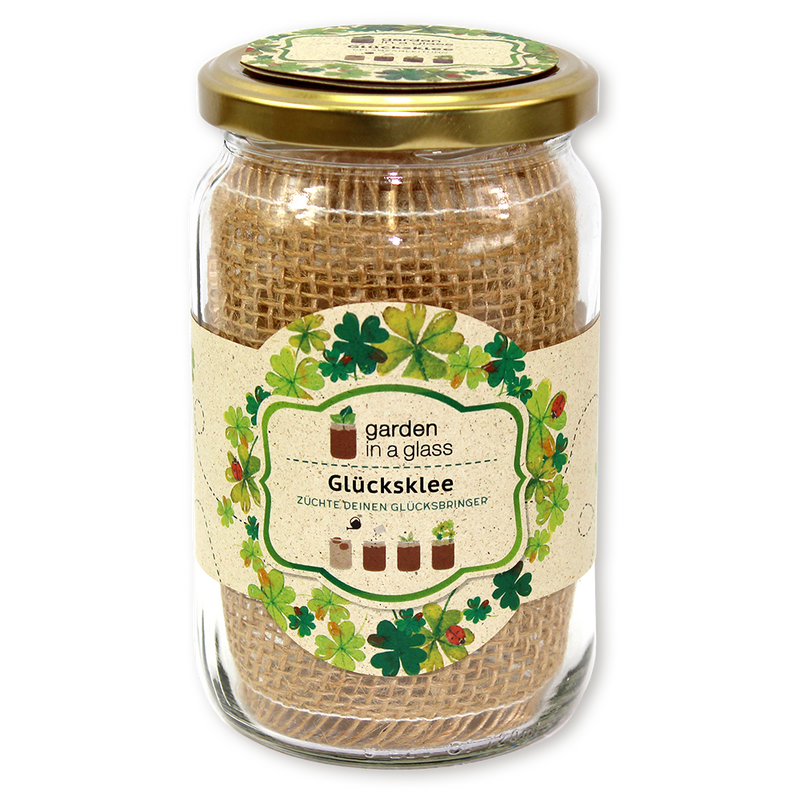 • Wird der Glücksklee zu groß für das Glas, vorsichtig herausnehmen und in einen Blumentopf mit etwas Erde verpflanzen.
