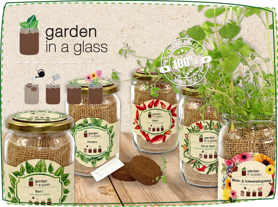 What goes into the glass depends on your own taste. The cultivation jars contain all the necessary components to bring a mini garden into your own home in no time at all. garden in a glass is also a great, sustainable gift for all amateur cooks and gardeners who value knowing where their ingredients come from.