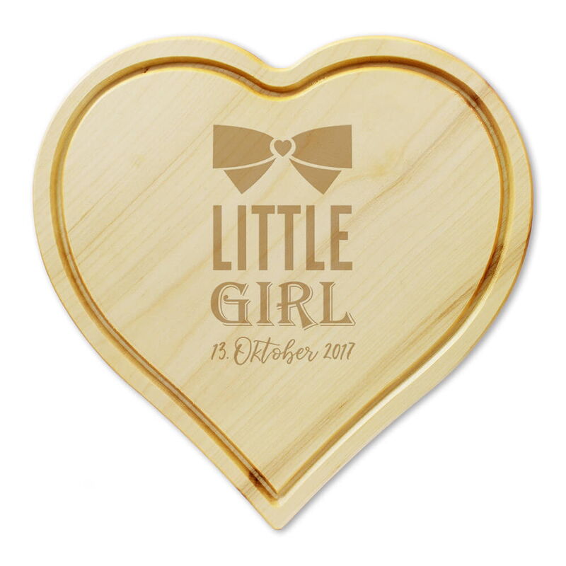 Es ist ein Mädchen! Überrasche die frischgebackenen Eltern zur Geburt ihres Kindes mit einem persönlich gravierten Herzbrett. Das einzigartige Erinnerungsstück eignet sich nicht nur als praktisches Küchenutensil zum Zubereiten und Servieren von leckeren Speisen, sondern auch als Dekoration.