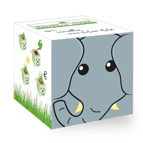 Grass Cube contiene granulato di fibra di cocco, granulato di argilla, vasetto compostabile e i semi.