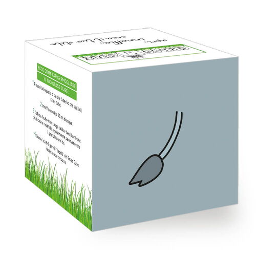 • Conserva il tuo Grass Cube in un luogo caldo e ben illuminato, innaffialo moderatamente fino a quando le piantine non germinano (indicativamente 20 ml di acqua ogni 3 giorni circa). Assicurati che il granulato non si asciughi – evita chel'acqua ristagni!