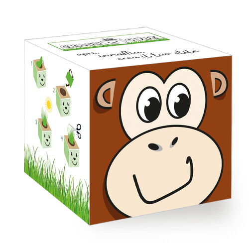 Grass Cube contiene granulato di fibra di cocco, granulato di argilla, vasetto compostabile e i semi.