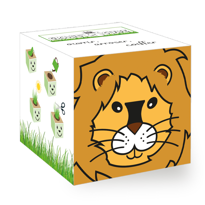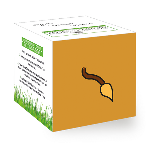 • Après deux semaines tu peux couper les « cheveux » de ton Grass Cube pour la première fois. Les brins deviendront encore plus épais et on peut les coiffer à sa guise.