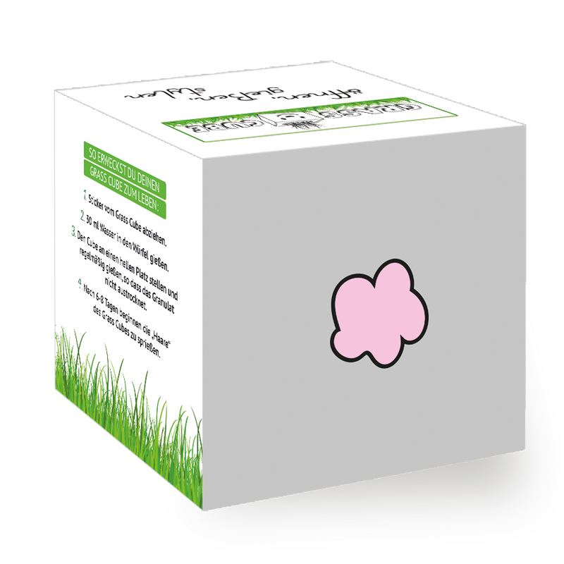 Grass Cube enthält Kokosfasergranulat, Tongranulat, kompostierbaren Anzuchttopf und Pflanzensamen.