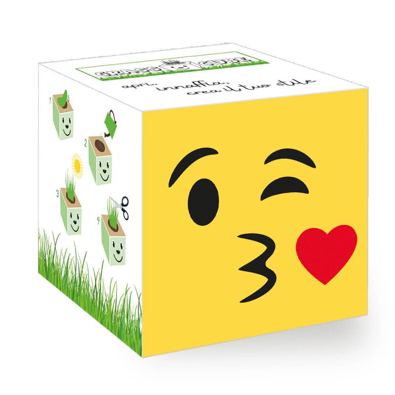 Grass Cube contiene granulato di fibra di cocco, granulato di argilla, vasetto compostabile e i semi.