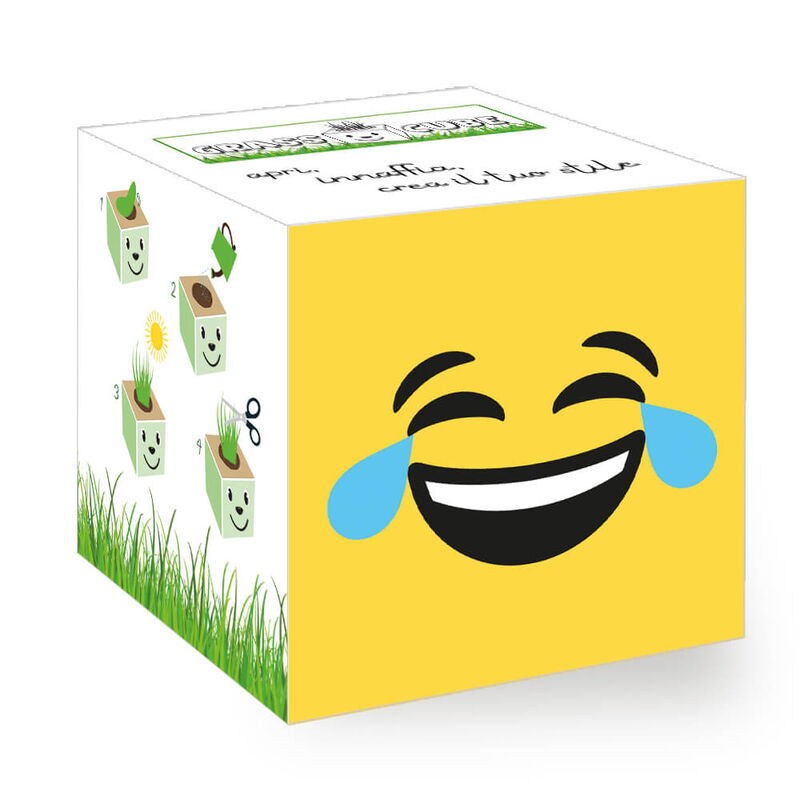 Grass Cube contiene granulato di fibra di cocco, granulato di argilla, vasetto compostabile e i semi.