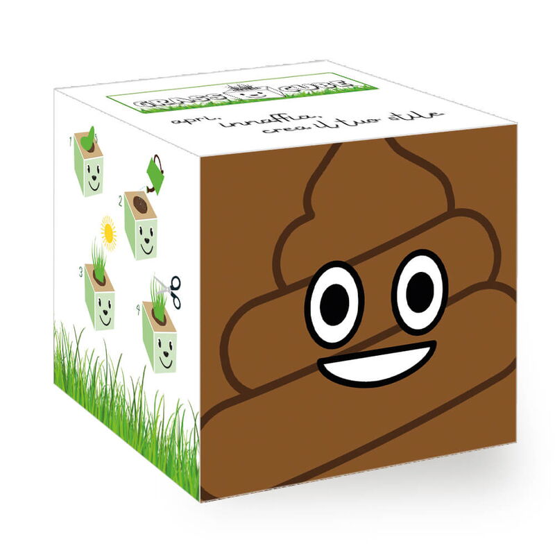 Grass Cube contiene granulato di fibra di cocco, granulato di argilla, vasetto compostabile e i semi.