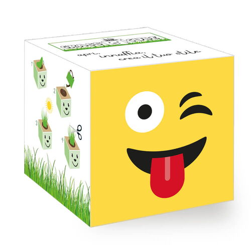 Grass Cube contiene granulato di fibra di cocco, granulato di argilla, vasetto compostabile e i semi.