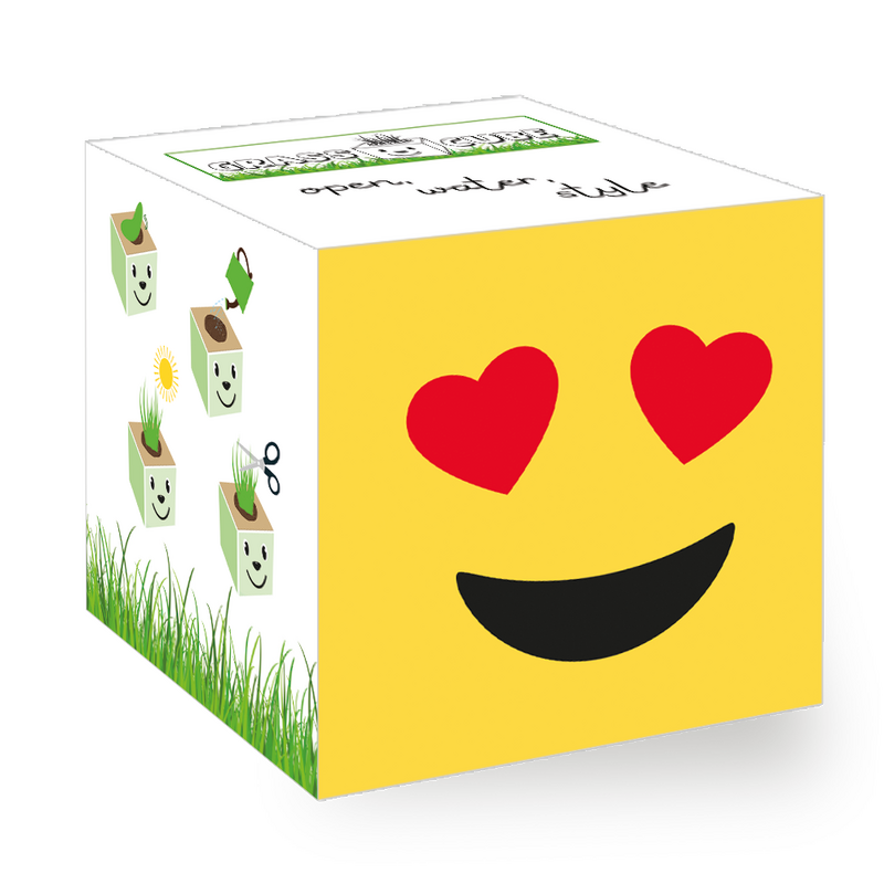 Grass Cube contains coconut fiber granulate, clay granulate, compostable planting cup and plant seeds.