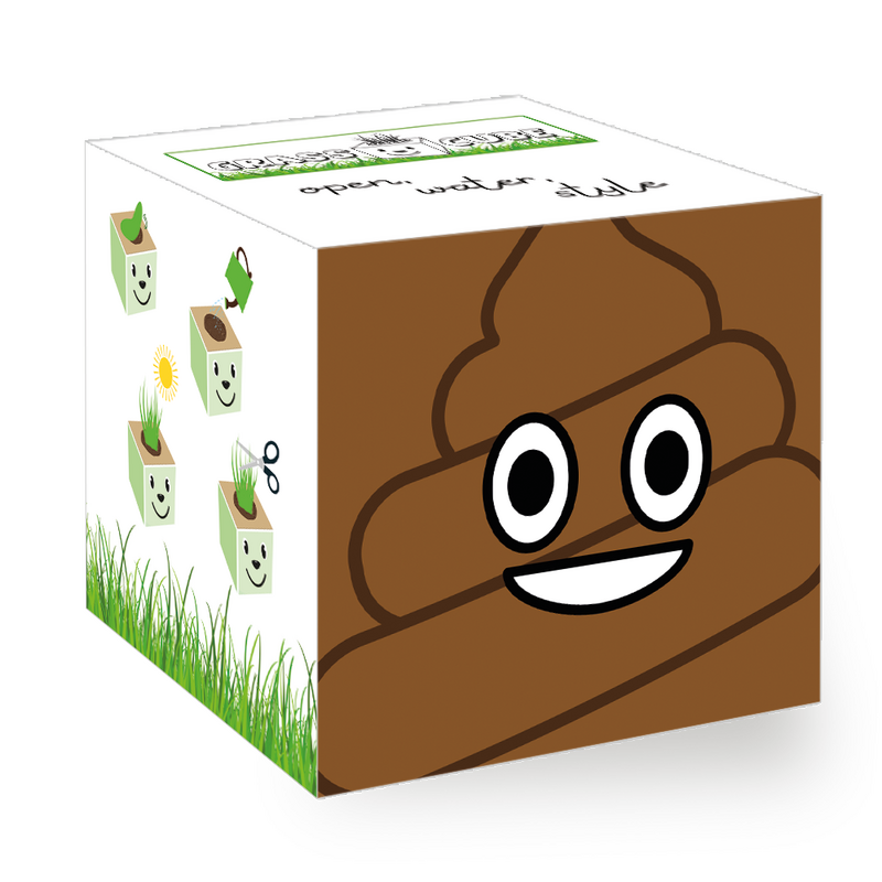 Grass Cube contains coconut fiber granulate, clay granulate, compostable planting cup and plant seeds.