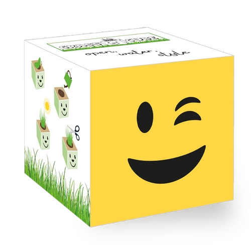 Grass Cube contains coconut fiber granulate, clay granulate, compostable planting cup and plant seeds.
