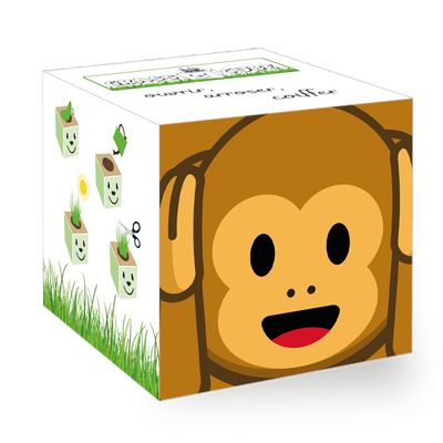 Grass Cube contient des granulés de fibres de noix de coco, des granulés d'argile, un gobelet de culture biodégradable et des semences de plantes