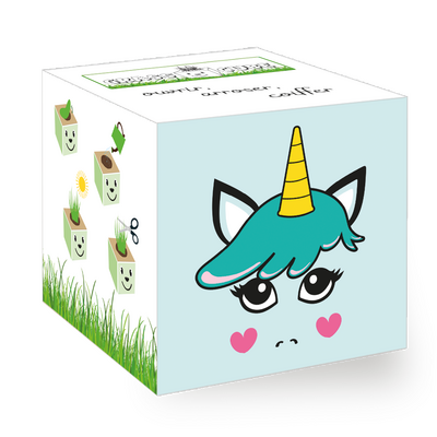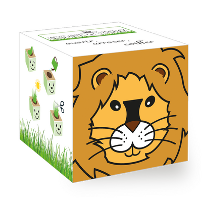 • Après deux semaines tu peux couper les « cheveux » de ton Grass Cube pour la première fois. Les brins deviendront encore plus épais et on peut les coiffer à sa guise.