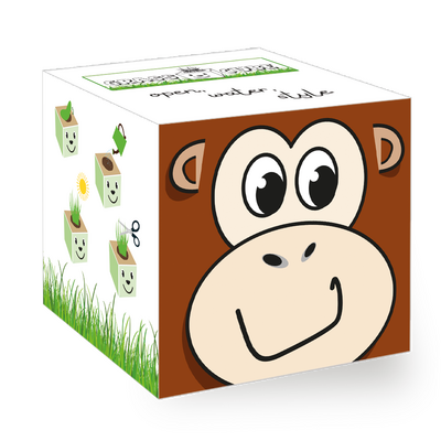 The Grass Cubes are plant-growing wooden cubes with various cute animal designs. They are popular not only with children, but also with adults of any age. The cubes have adorable illustrations with animal designs and are a lot of fun to grow and bring a playful green touch into every living room, play room or office. After about 2-3 weeks, you can use your creativity and go to work and style the grass hair or give it a stylish grass haircut.