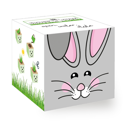 • After about 6-8 days, the "hair" of the Grass Cube will start to grow. Continue to water moderately. After about 14 days, you can give your Grass Cube its first haircut. The grass blades will grow back even more densely and can be "styled" as desired.