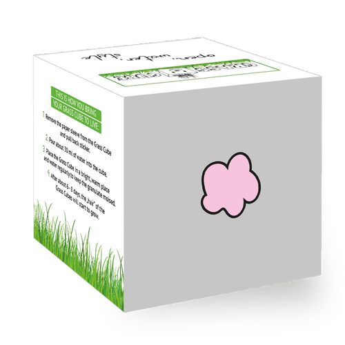 • Remove the paper sleeve from the Grass Cube and pull back sticker.