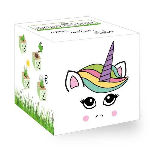 Grass Cube contains coconut fiber granulate, clay granulate, compostable planting cup and plant seeds.