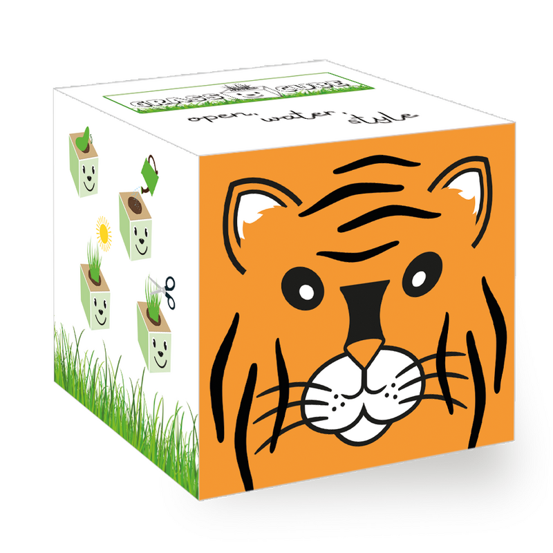 Grass Cube contains coconut fiber granulate, clay granulate, compostable planting cup and plant seeds.