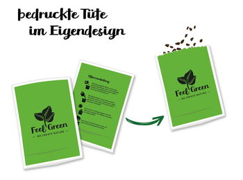 Zusätzlich ist es noch möglich ein individuelles Kärtchen z.B. für die Pflanzanleitung oder eine zusätzliche Werbeanbringung in die Tüte dazu zupacken.