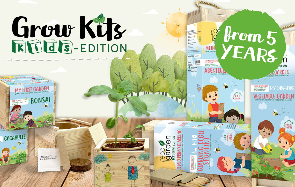 Young gardeners learn to grow their first plants from seeds in a playful and creative way and to take care of them regularly. Our grow kits for the little ones contain almost all the components to get started in just a few steps and create their first mini garden – and this is even possible indoors all year round!