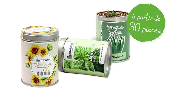 Le growtainer contient granulés de fibres de noix de coco, granulés d'argile et semences de plantes.