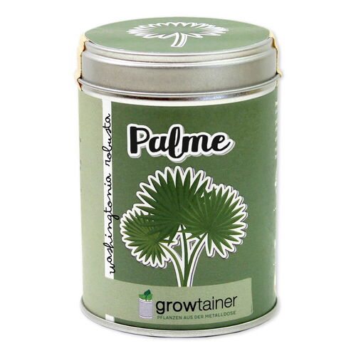• Sobald die Palme zu groß für die Dose wird, vorsichtig herausnehmen und in einen Blumentopf mit etwas Erde verpflanzen.
