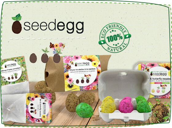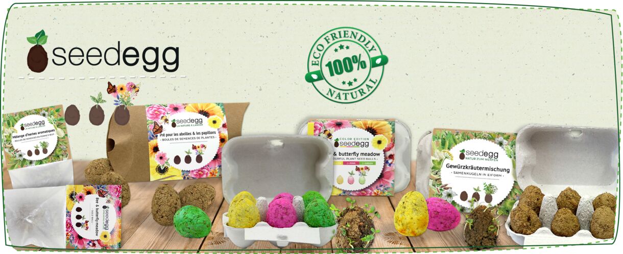 Nos seedeggs sont petits mais chic ! Les petites boules de semences transforment des surfaces vertes, des parterres de fleurs ou des pots de fleurs en un petit paradis nutritif pour les abeilles ou en un parterre d'herbes aromatiques. Les seedeggs fabriqués avec grand soin à la main se composent à l'extérieur et à l'intérieur exclusivement de matières naturelles et en grande partie certifiées biologiques et il est seulement nécessaire de les arroser! Avec des soins réguliers, les petites boules naturelles en forme d'œuf se transforment en prés de fleurs utiles ou en un mini parterre d'herbes aromatiques qui attirent et nourrissent les abeilles, les papillons et beaucoup d'autres insectes utiles!