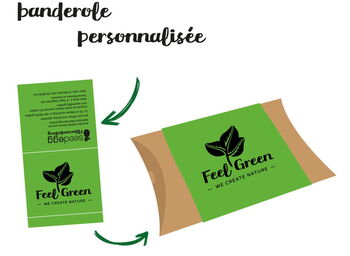 La boîte oreiller élégante en papier kraft est remplie avec 4 œufs contenant des semences de plantes et emballée avec une banderole personnalisée.