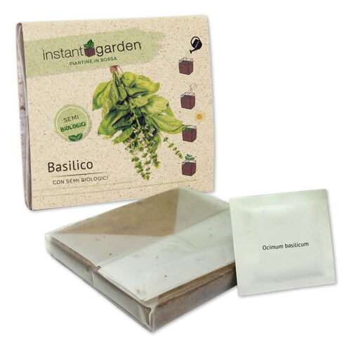 L'instant garden contiene compresse in fibra di cocco, borsa da coltivazione, sacchettino con i semi.