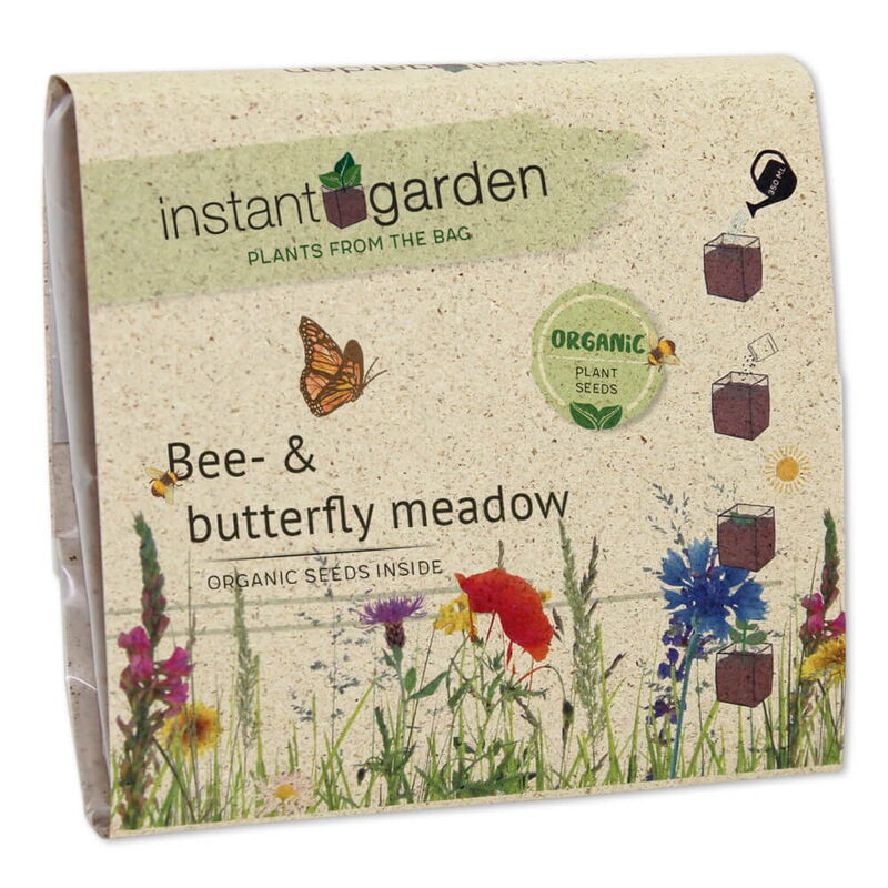instant garden contains plant bag, seed bag with certified organic plant seeds and a coconut fiber tab.
