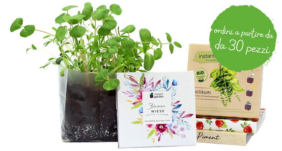 Gli instant garden sono la soluzione pratica e salvaspazio per coltivare le tue erbe aromatiche direttamente sul davanzale della finestra in cucina, permettendoti di raccoglierle dopo pochi giorni. Rispetto agli altri set, le piantine di questo kit possono germogliare e crescere fino a 12 mesi, grazie all'ampio volume a disposizione.