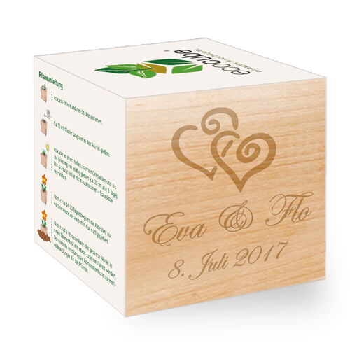 Wie wäre es mit einem langlebigen, persönlichen und von Herzen kommenden Erinnerungsstück an euren gemeinsamen Jahres- oder Hochzeitstag? Bei diesem ecocube blüht nicht nur eure Liebe auf, denn es ist eine sehr herzige und persönliche Geschenkidee zur Hochzeit, zum Valentinstag oder Jahrestag.