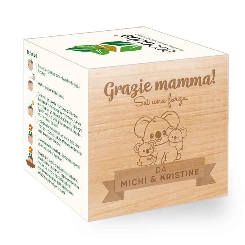 - Il lato sinistro del cubo è personalizzato con la tua personalizzazione e rende l'ecocubo un ricordo speciale e un regalo originale.